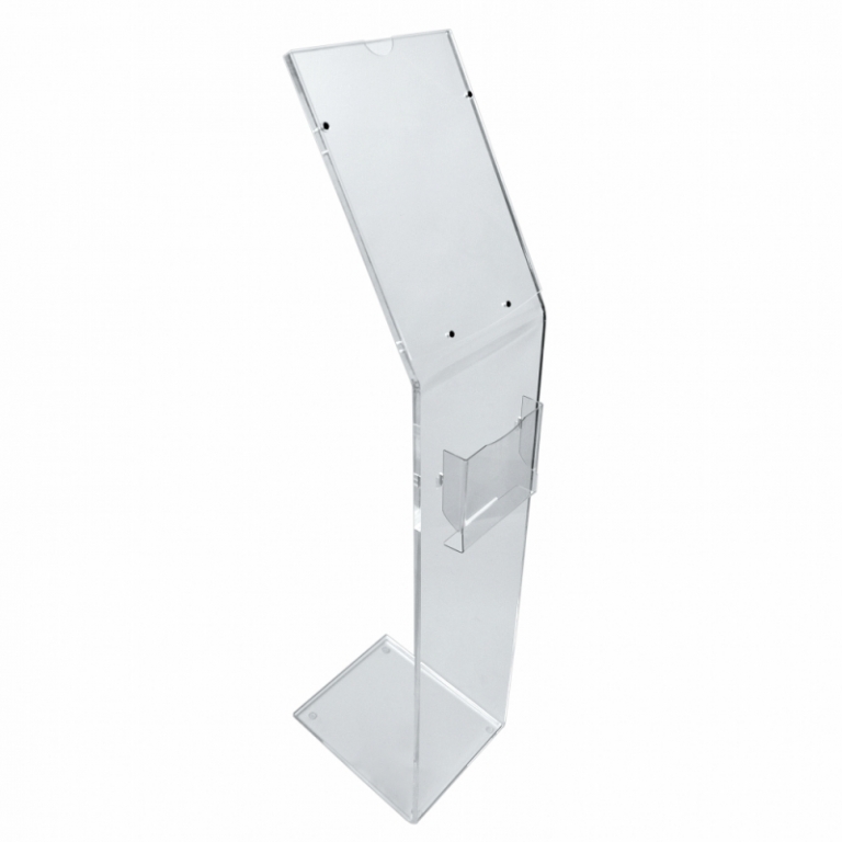 Suport afisaj plexiglas de podea cu buzunar pentru pliante